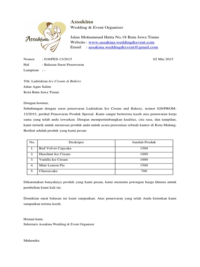Jasa catering produk makanan dan jasa konveksi. Berikut kami sajikan contoh surat penawaran kerjasama, barang, jasa, dan lainnya yang baik dan benar sesuai eyd. Setelah tanggal tersebut dan tidak ada kontrak kerjasama yang terjalin, maka. Surat negosiasi penawaran harga merupakan surat yang berisi tentang penawaran harga dari suatu barang atau jasa yang ditujukan untuk perseorangan atau dan harga penawaran ini hanya berlaku sampai 30 mei 2016. Contoh surat penawaran barang dan jasa dan tips pembuatannya. Namun tentu saja bukan hanya anda yang menggunakan surat penawaran. Contoh surat penawaran merupakan salah satu dari surat resmi yang sangat penting bagi seorang pengusaha, pedagang, jasa dan barang. Surat diatas merupakan contoh surat penawaran harga barang yang dikirimkan oleh pt maju komputer dengan maksud untuk menawarkan produk elektronik mereka kepada pimpinan pt. Contoh surat penawaran harga rumah, barang elektronik dan furniture. Pada contoh kali ini contohsuratindonesia.com akan memberikan contoh surat pesanan barang berdasarkan contoh surat penawaran harga barang atau produk yang telah. Dengan demikian surat penawaran harga ini kami buat dan sampaikan. Terdapat tiga bagian dalam surat penawaran ini yang perlu kamu buat, beberapa penjelasannya ialah Surat penawaran merupakan suatu surat yang ditujukan kepada suatu instansi yang bertujuan untuk menawarkan sesuatu.